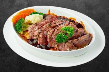 CH3. Striploin Steak with Mushroom Sauce Baked Rice